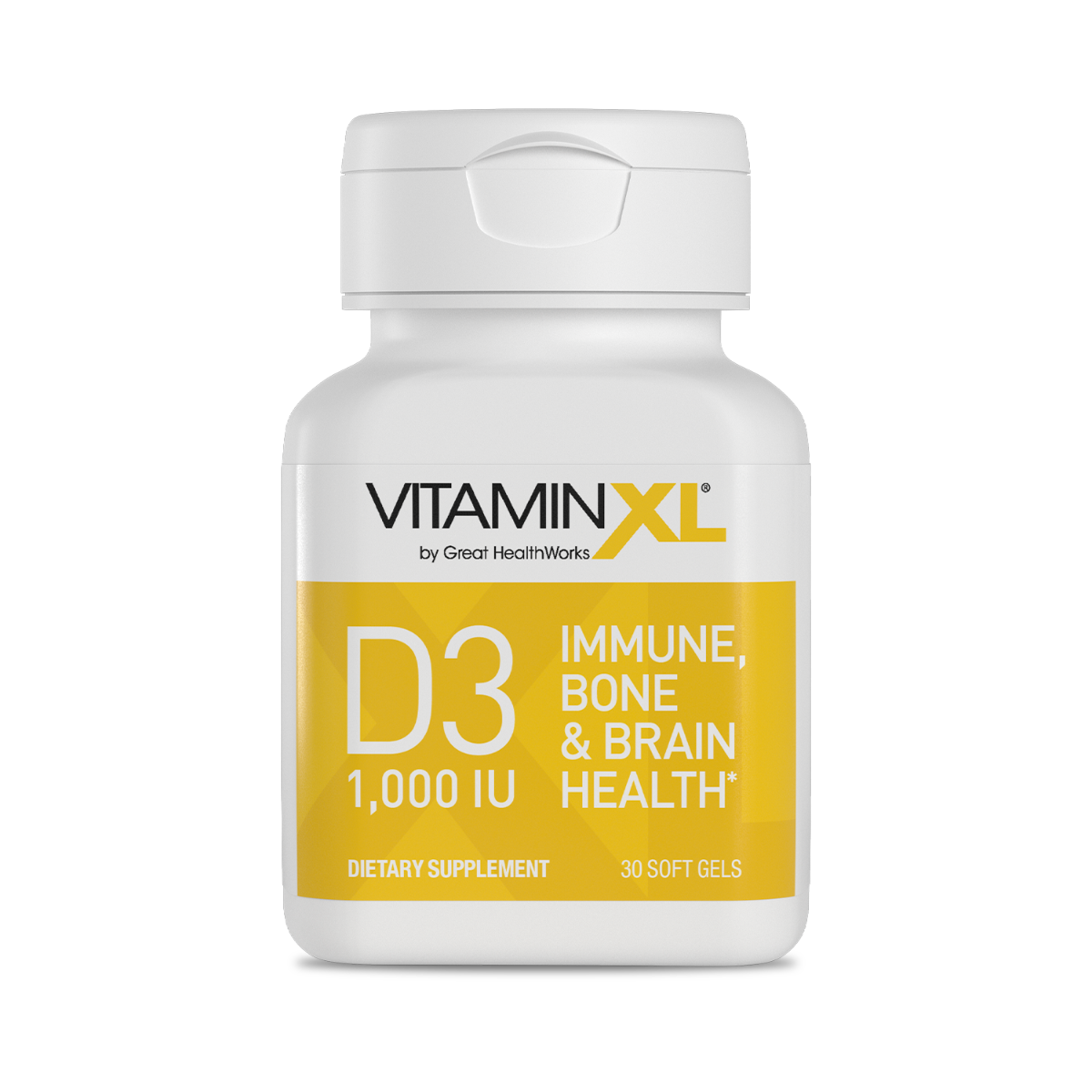 VitaminXL D3 has the most absorbable form of Vitamin D to support immune, bone, and brain health.* It helps sustain healthy blood levels of essential Vitamin D to offer a broad spectrum of health benefits, including maintaining strong bones and muscles, youthful cognition, and immune and cardiovascular health.* Vitamin D3 is essential for whole-body health.* Your skin produces vitamin D when exposed to sunlight, but most people do not get the vitamin D they need, even in sunny areas or hot climates.